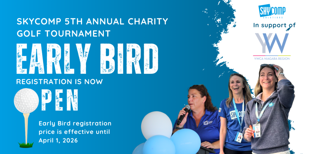 At Skycomp Solutions, giving back to the community we’re proud to be part of isn’t just something we say — it’s something we do. In 2026, we’re honoured to support YWCA Niagara through our annual charity golf tournament. Over the past four years, together with our partners, clients, and friends, we’ve raised more than $64,000 for local charities — and we’re excited to see the impact we can make this year.